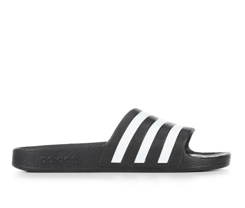 Head to the beach or run errands in solid style wearing the adidas® Adilette Aqua Slides! With a quick drying upper, cushioned footbed, and EVA traction outsole you’ll be able to stay on your feet in comfort and with style all day!