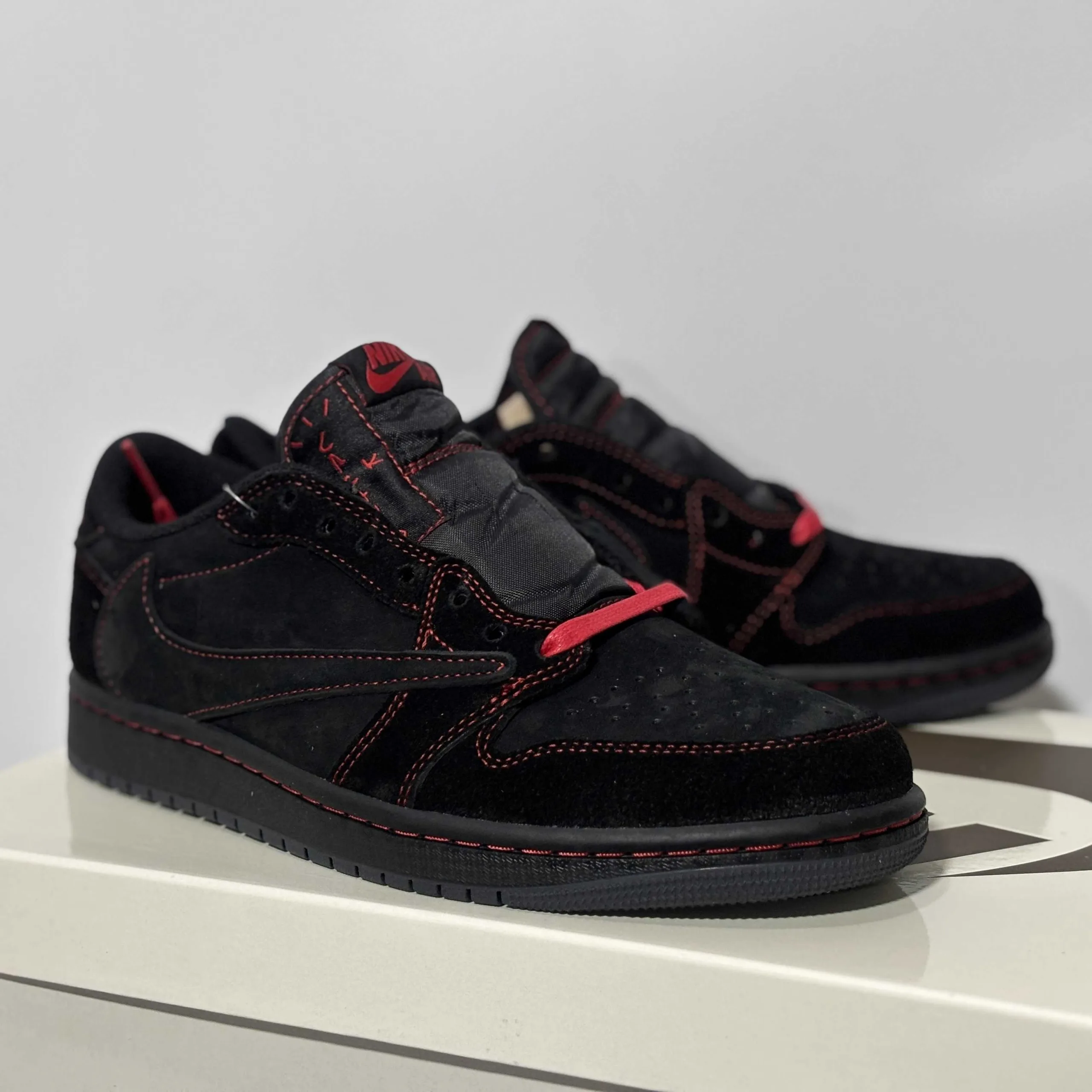 AJ1 Reverse Swoosh Black and Red Strap UA Version