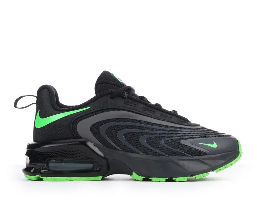 Designed to turn heads and power through play, this energetic sneaker pairs futuristic style with all-day support. The breathable mesh upper keeps feet cool, while wavy overlay patterns and a visible Air unit bring serious style and cushioned comfort. A padded interior and classic lace-up closure help lock in the fit, and the sculpted rubber outsole grips the ground for confident movement wherever they go.