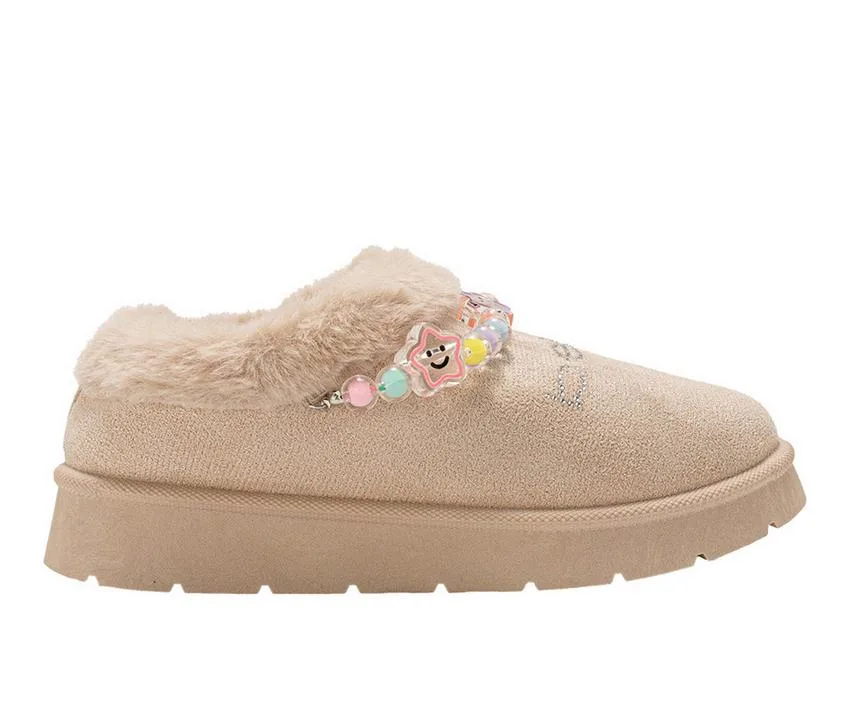She’ll stay cozy and cute in these playful faux-fur mules designed for warmth and fun style. The soft upper and plush lining keep her feet comfortable, while the beaded floral embellishments add a touch of sparkle and personality. A cushioned insole supports every step, and the sturdy outsole provides grip for indoor lounging or quick outdoor trips. Perfect for cozy days around the house or casual wear.