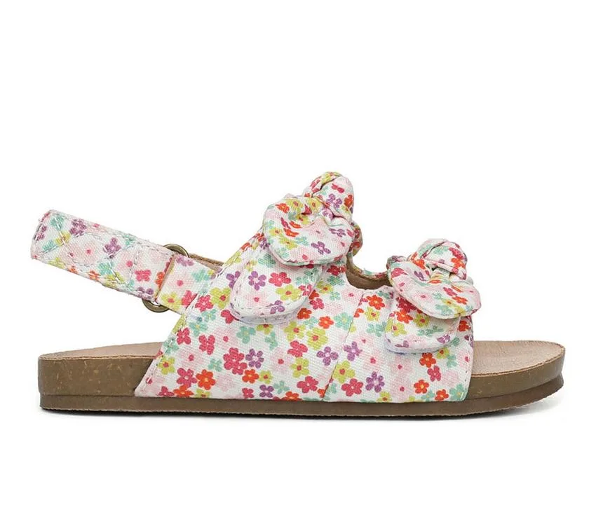 Designed for sunny-day fun, this toddler sandal delivers comfort and charm in a simple, easy-to-wear design. The canvas upper features a playful print that adds personality to everyday outfits. An adjustable hook-and-loop slingback closure helps create a secure, just-right fit. An open toe and cushioned footbed keep little steps comfortable during active play. Finished with a flat heel, it’s ideal for all-day adventures.