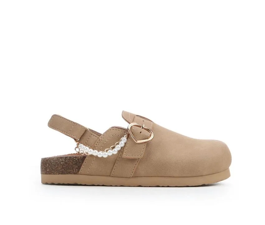 The Girls’ Jellypop Brinkley mules blend cozy clog comfort with standout style details she’ll love. Featuring a closed-toe design with a slingback strap for added security, these slip-ons are finished with a heart charm and faux pearl chain for a playful, dressed-up touch. The cushioned footbed and easy-on style make them perfect for casual days with a little sparkle.