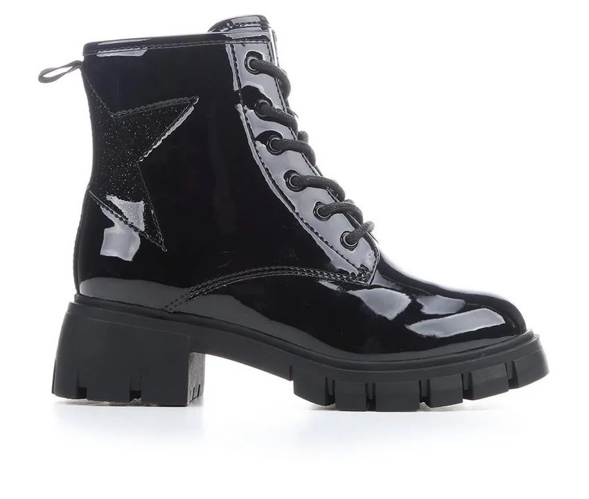 The MIA Karyna Boot is built for bold style with a modern edge. Designed with a shiny patent upper, it features a lace-up front and side zipper for both style and convenience. A cushioned footbed provides comfort for all-day wear, while the chunky lug outsole adds trendy flair and dependable traction. Perfect for dressing up casual looks or adding attitude to any outfit, this boot brings standout style to her wardrobe.