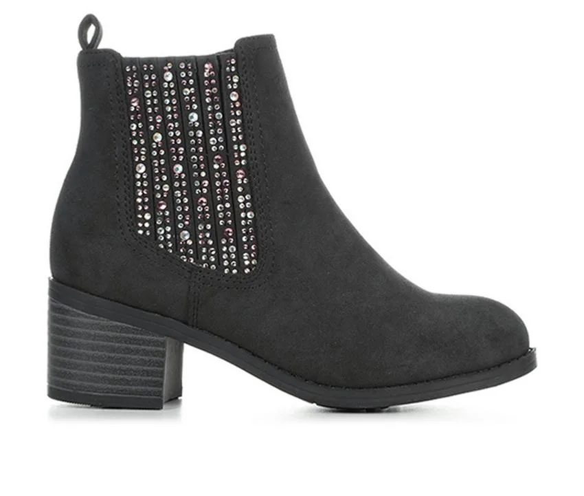 Stylish and versatile, the Girls’ MIA Syena Boots add a modern edge to her everyday outfits. Designed with a sleek ankle boot silhouette, they feature elastic side panels and a side zipper for easy on and off. A chunky lug sole provides both trendy style and dependable traction, while the cushioned footbed ensures comfort for all-day wear. Perfect for school, weekends, or casual outings.