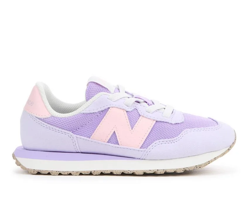 Retro vibes meet modern cool in the Girls’ New Balance 237 Running Shoes! With a mix of bold colors and a lightweight design, these kicks are perfect for playdates or dashing to the ice cream truck. Finished with a cushioned midsole and durable rubber outsole, they’re comfy, stylish, and built for all-day fun.