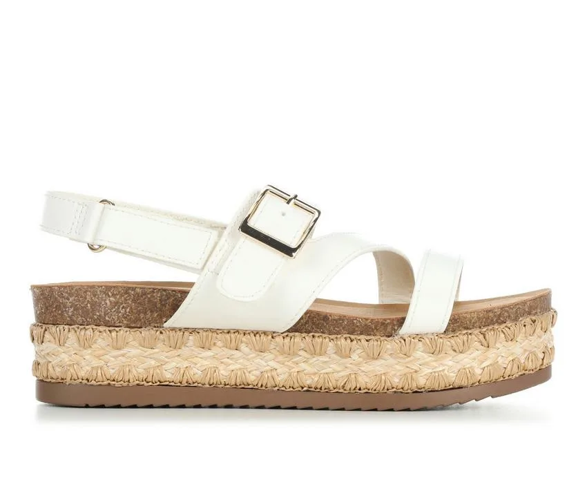 The Soda Trope is a girls’ open-toe platform sandal designed for warm-weather casual wear. It features smooth, stitched straps with an adjustable ankle buckle for a secure fit, set on a jute-wrapped platform midsole for an espadrille-inspired look and added height.
