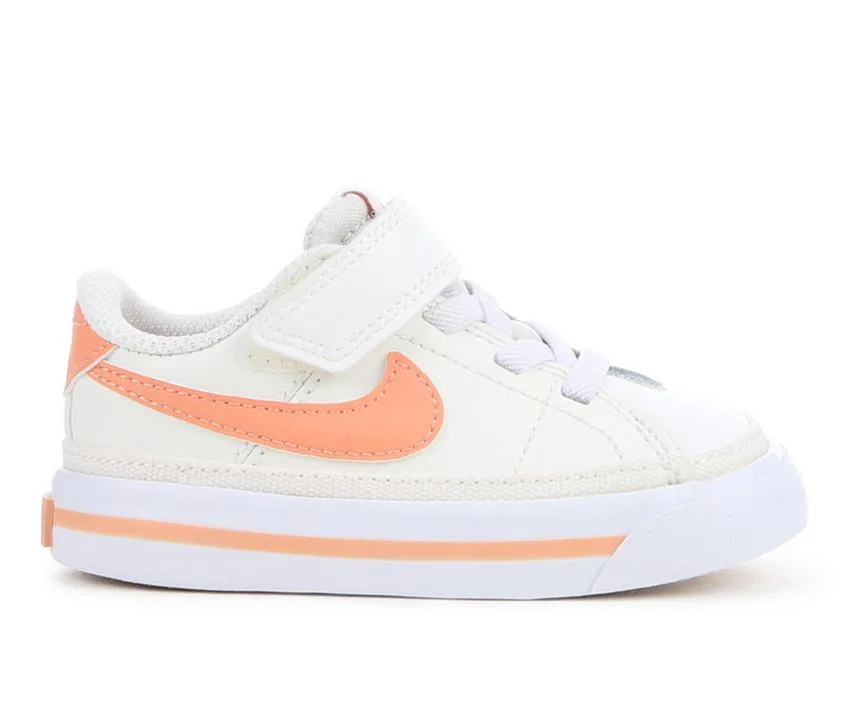 Classic style meets tiny feet with the Nike Infant & Toddler Court Legacy Sneakers! With an easy velcro strap and elastic laces, getting ready is a breeze—because chasing little ones is already a workout. Plus, the cushy foam and grippy sole keep them comfy and steady, whether they’re taking their first steps or racing to snack time!