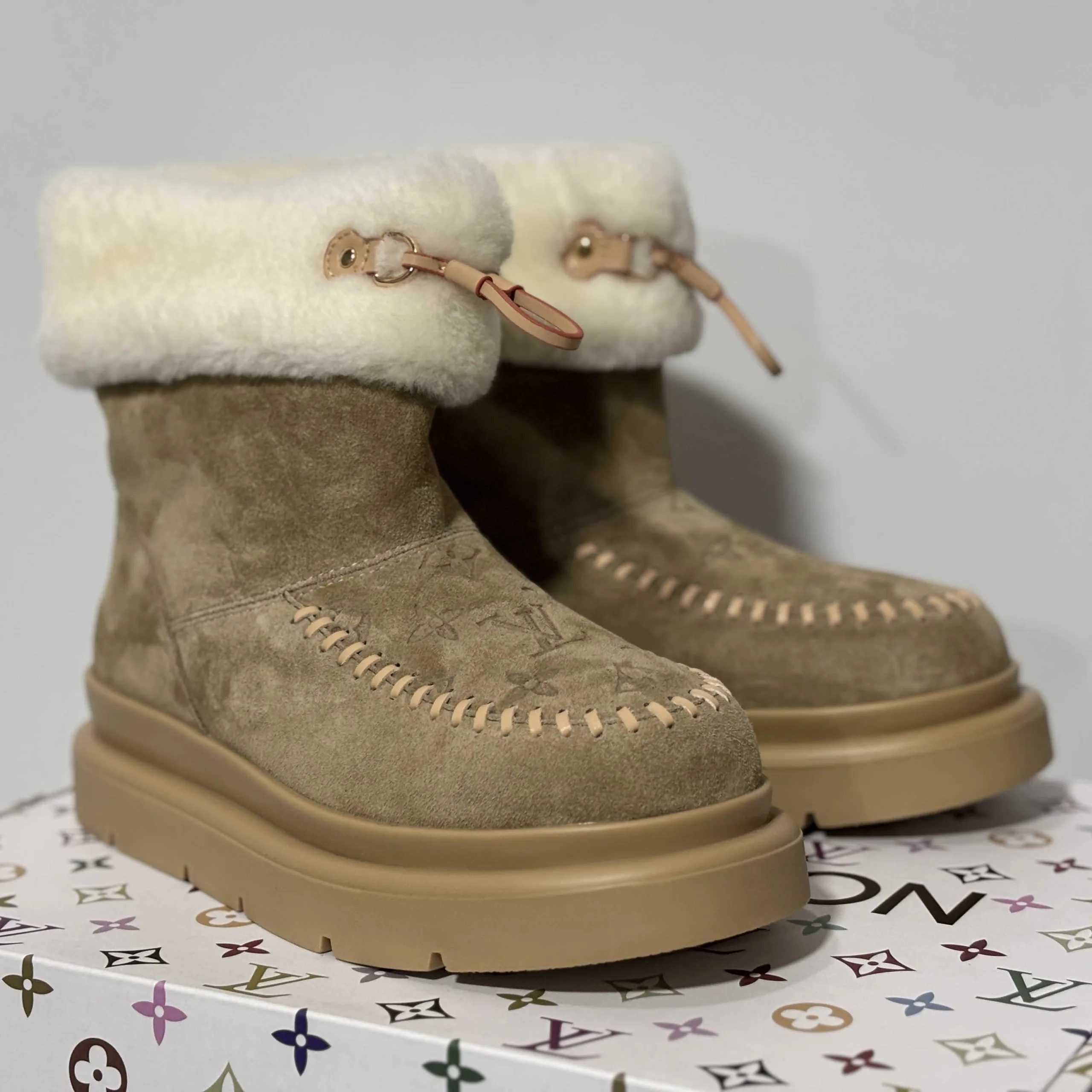LV snow boots, sand color