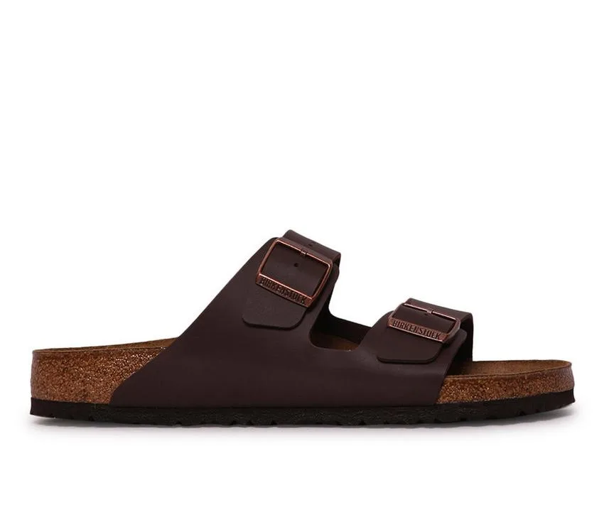 Men’s Birkenstock Two-Strap Cork Sandals. From the brand that is known for creating and perfecting a tradition of walking comfort we present the Birkenstock Arizona! These slip-on sandals feature dual adjustable straps at the vamp for a secure fit. The original Birkenstock footbed offers arch support, a deep heel cup, and a roomy toe box so you and your feet can kick back and enjoy the day!