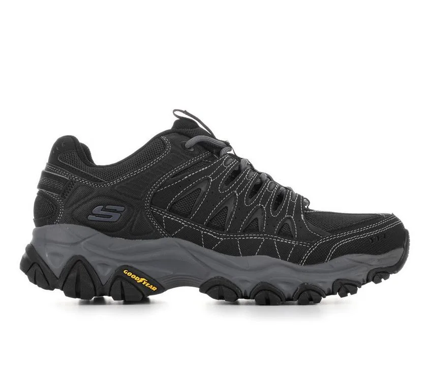 Explore wild terrain in comfort with After Burn M.Fit 2.0. This lace-up outdoor trail design features a leather, synthetic and mesh upper with a cushioned Memory Foam insole and Goodyear® Rubber Outsole.