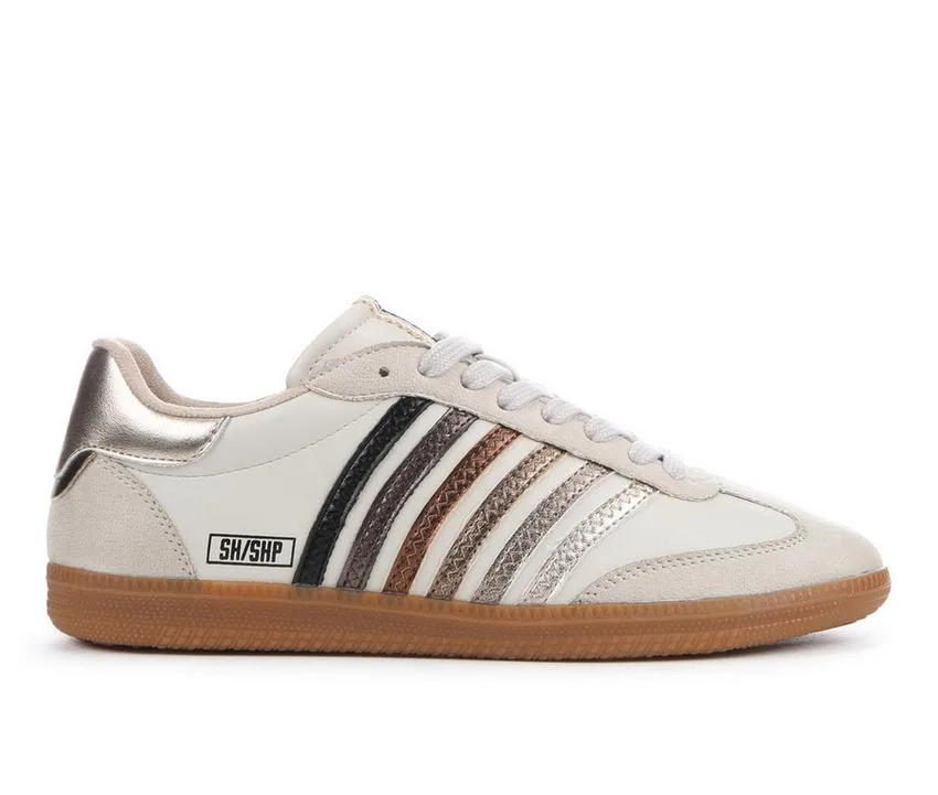 The Women’s Shu Shop Stevie Sneakers blend retro flair with modern comfort, making them a standout choice for everyday wear. Featuring a mix of faux leather and suede materials, these lace-up sneakers showcase stitched side stripes and a contrasting heel tab for added style. The cushioned insole and durable rubber outsole ensure all-day comfort and support, whether you’re running errands or meeting up with friends.