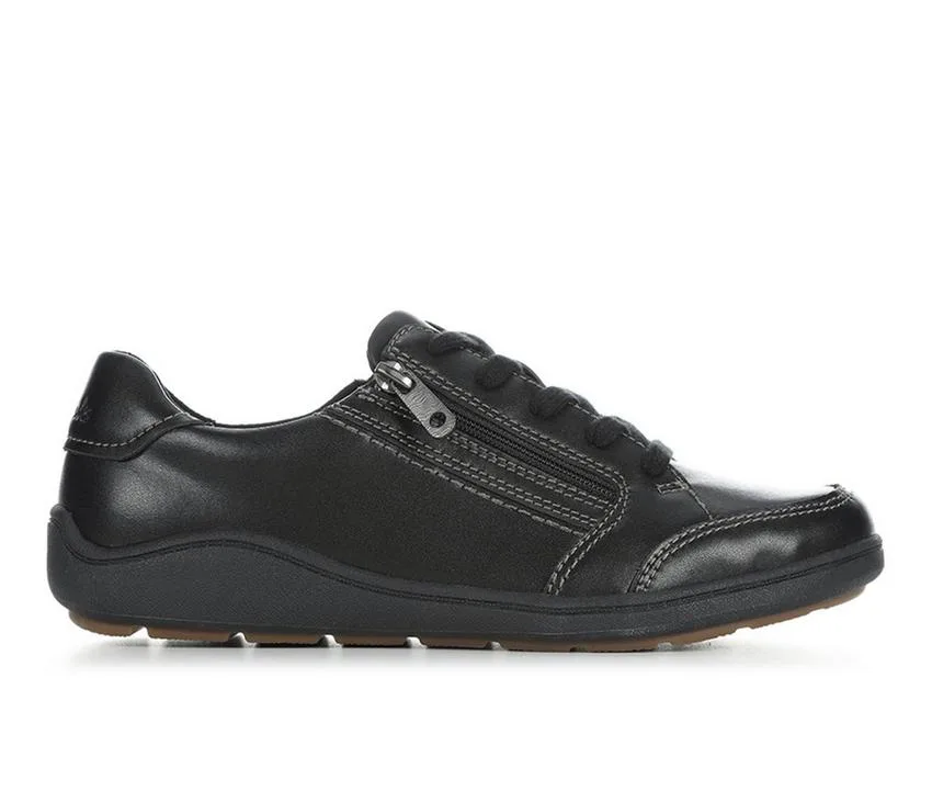 The Clarks Bryianna Bayla Sneaker is built for modern comfort with a polished finish. Designed with a metallic leather upper, it features both lace-up styling and a side zipper for easy on and off. A cushioned insole provides all-day support, while the lightweight midsole helps absorb impact with every step. Finished with a flexible rubber outsole, this sneaker blends everyday comfort with sleek, versatile style.