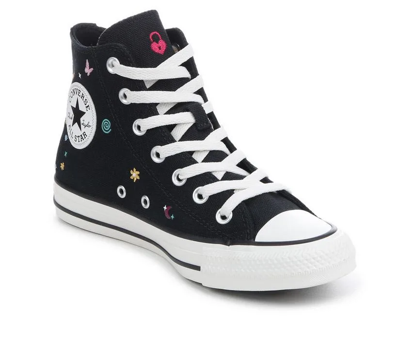 Classic meets creative in this fun remix of the legendary high-top. Featuring a durable canvas upper adorned with playful embroidered graphics, this Converse reimagines the iconic Chuck Taylor with fresh, expressive flair. The traditional lace-up design ensures a secure fit, while the rubber toe cap and vulcanized sole deliver that time-tested Converse comfort and durability. It’s the perfect blend of nostalgic style and personal expression.