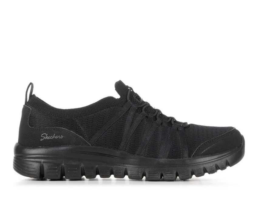 Grace your feet with easy-wearing comfort in Skechers Graceful. This stretch-laced vegan style features a Stretch Fit® mesh and synthetic overlay upper with a cushioned Skechers Memory Foam™ insole.