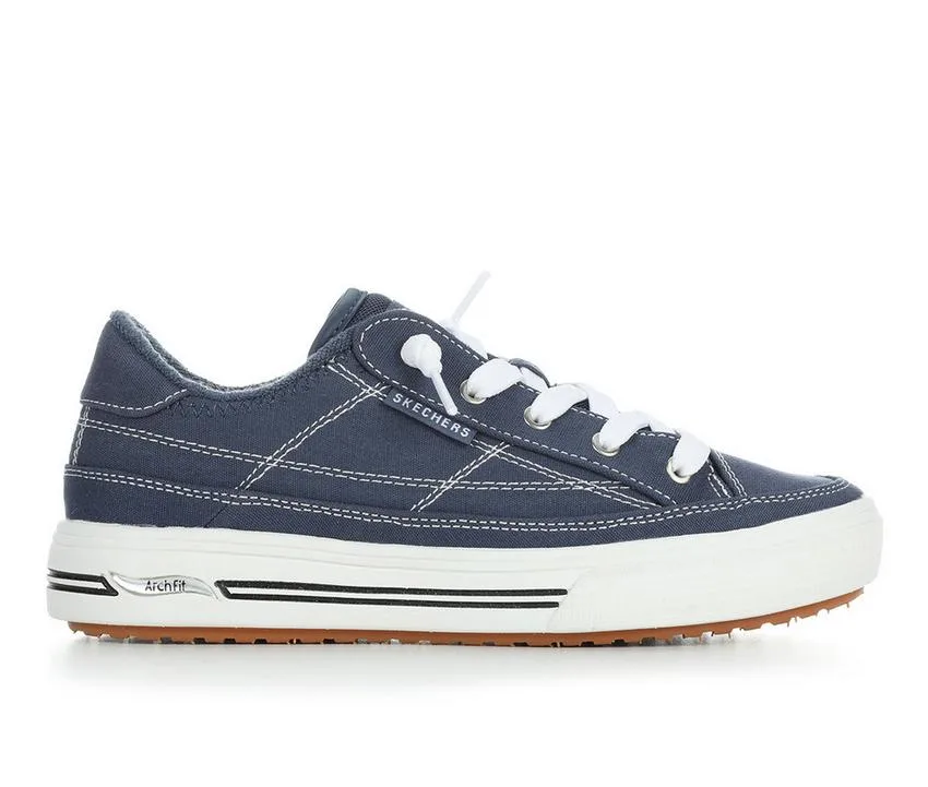 The Skechers Street Arch Fit Arcade 177195 is a women’s low-top canvas sneaker designed for everyday wear, featuring a lace-up look and a removable Arch Fit insole for structured underfoot support. A lightweight cushioned midsole and flexible traction outsole help keep it comfortable and steady for daily walking.