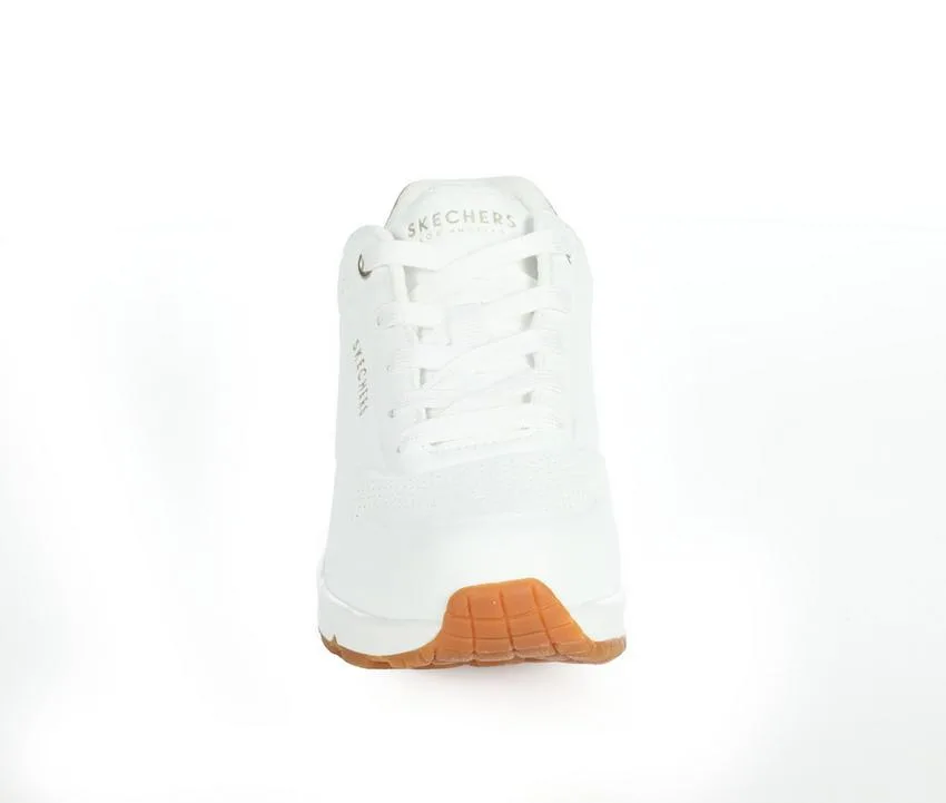 Make a bold statement in the Women’s Skechers Street Uno RVGD Love Sneakers. Featuring an eye-catching design with street-style edge, these sneakers combine a smooth synthetic upper with air-cushioned comfort and embroidered heart accents. A cushioned insole and retro-inspired silhouette bring together fashion and function for standout everyday wear.